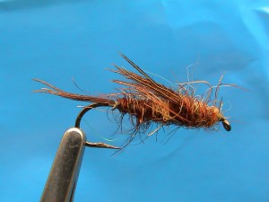 size 10 long shank, heavily leaded, light and dark brown scruffy fluff and pheasant tails tied in fairly random places - hey look I'm trying to take this seriously, you know this whole fly-tying thing, but Christ, *it just doesn't matter*, you can stick any old bit of fluff out there and catch fish, so long as it's the right size and presented half way right *it catches*, not only that it catches more bloody fish than if you were to spend hours tying the thing "to look pretty". Sorry guys, that's the truth. Welcome to flytying enlightenment.