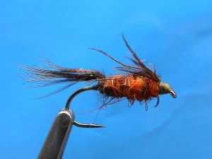 Sometimes I go in more for the ultra-realistic. This is a good example. I forget the Latin name, but it definitely has one. To the uninitiated this may look like I've just glued some insect to a hook. But I can assure you this is all just fur and feather. Surprising I know. If you look closely you may be able to make this out - for example, study the tails for a little while and it should become clear: feather.