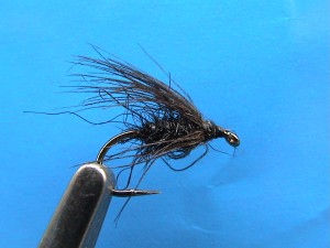 size 10, lead, black fluff, hen hackle [crumple effect].