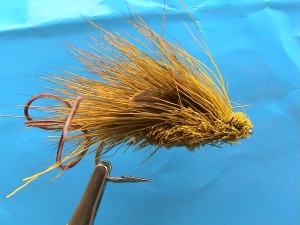 a big hook, a wiggly tail (important trigger point of course), deer hair tied on top and pulled under, muddled a bit and stacked.